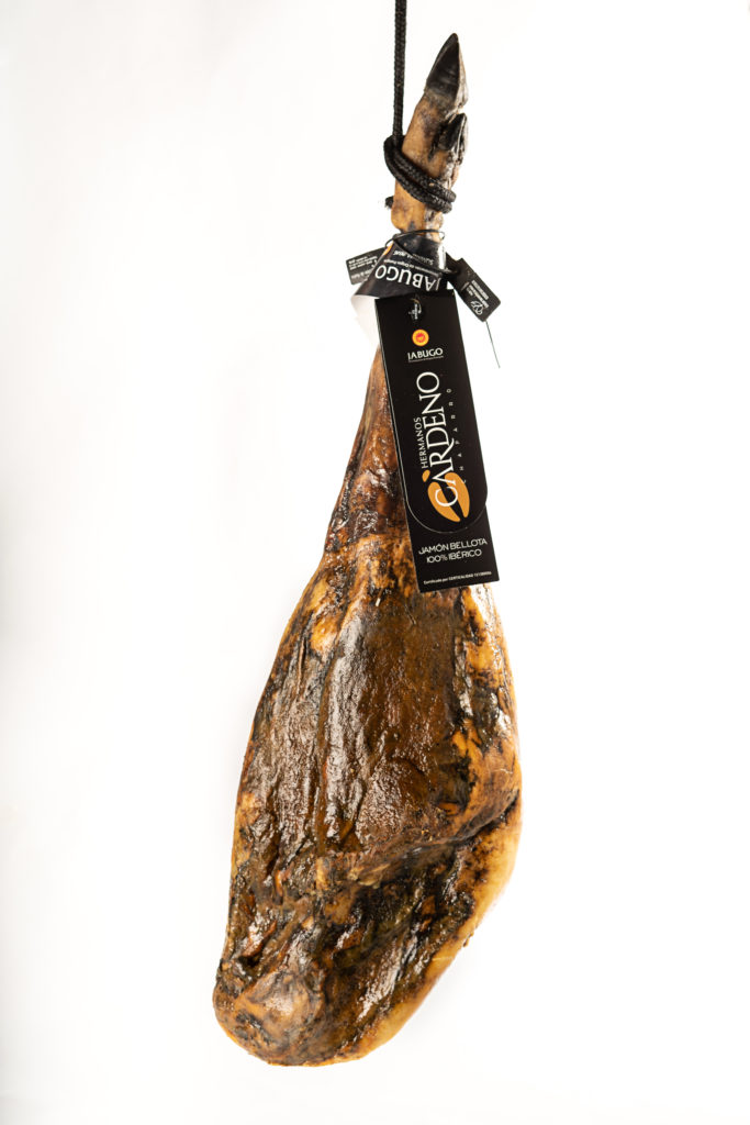 Nos Jambons Ibériques Bellota DOP Jabugo sont reconnus comme faisant partie des meilleurs Jambons au monde. Ceci est dû à l’élevage et à l’affinage traditionnel qui se fait dans la province de Huelva au Sud-Ouest de l’Espagne. Les cochons vivent en semi-liberté et se nourrissent uniquement de Bellota (glands) pendant la saison de la Montanera